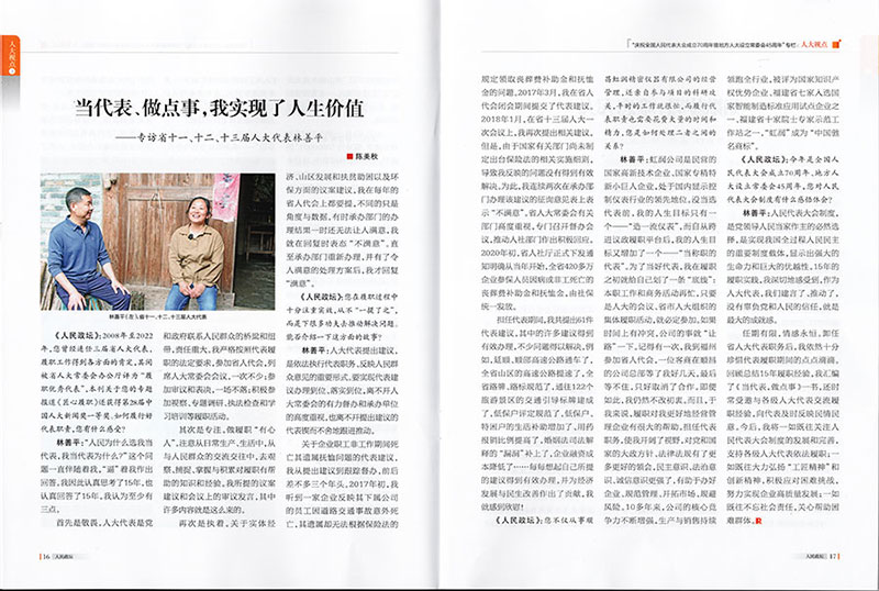 林善平:“人民為什么選我當代表,我當代表為什么?”這個問題一直伴隨著我,“逼”著我作出回答。我因此認真思考了15年,也認真回答了15年。我認為至少有三點。