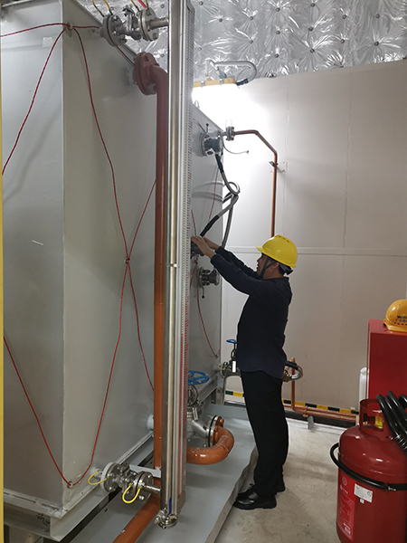 11月7日凌晨6點,東方剛露出魚肚白。孫利勤踏著晨露,帶著虹潤產(chǎn)品和測試安裝設備馬不停蹄來到了珠海港口,經(jīng)過2個多小時的海上跋涉,終于到了海上風電升壓站現(xiàn)場,對于客戶提到的技術(shù)要求,孫利勤先是對現(xiàn)場環(huán)境進行測試和判斷,與客戶認真溝通制定了技術(shù)應用方案,并于次日成功安裝。虹潤儀表現(xiàn)場表現(xiàn)良好,對海上升壓站TC690L柴油發(fā)電設備液位控制精度高且運行穩(wěn)定,得到了客戶的好評。解決了客戶的技術(shù)需求,虹潤人的心也放下了,這次跨越大海的技術(shù)服務終于不辱使命。
