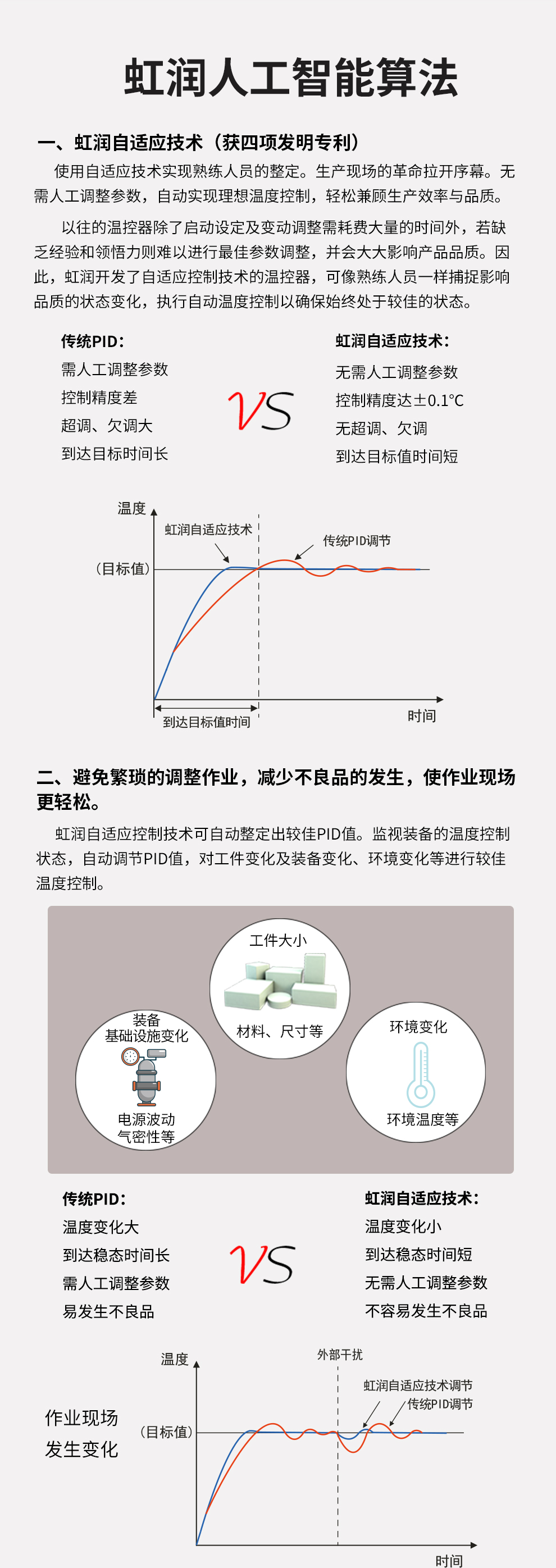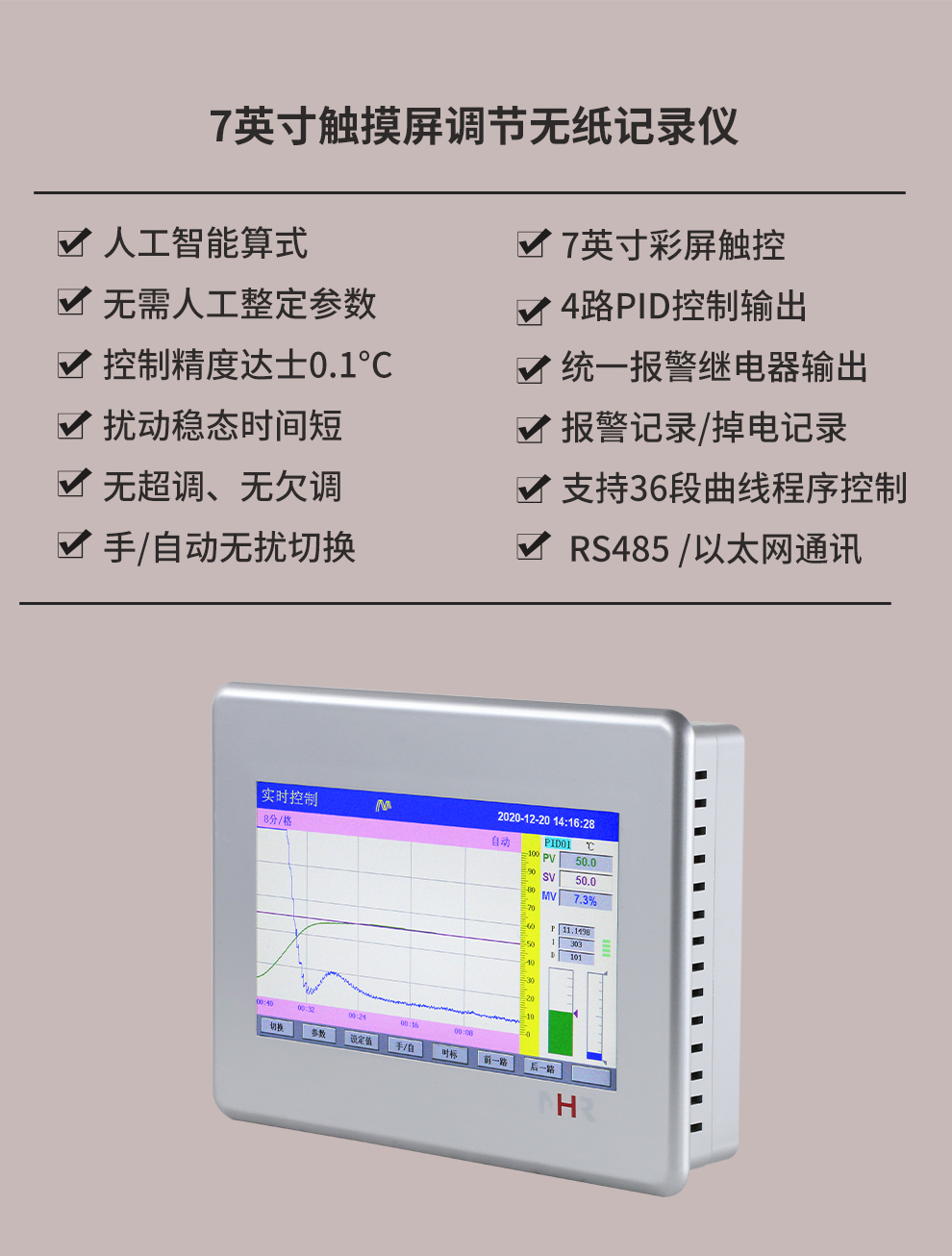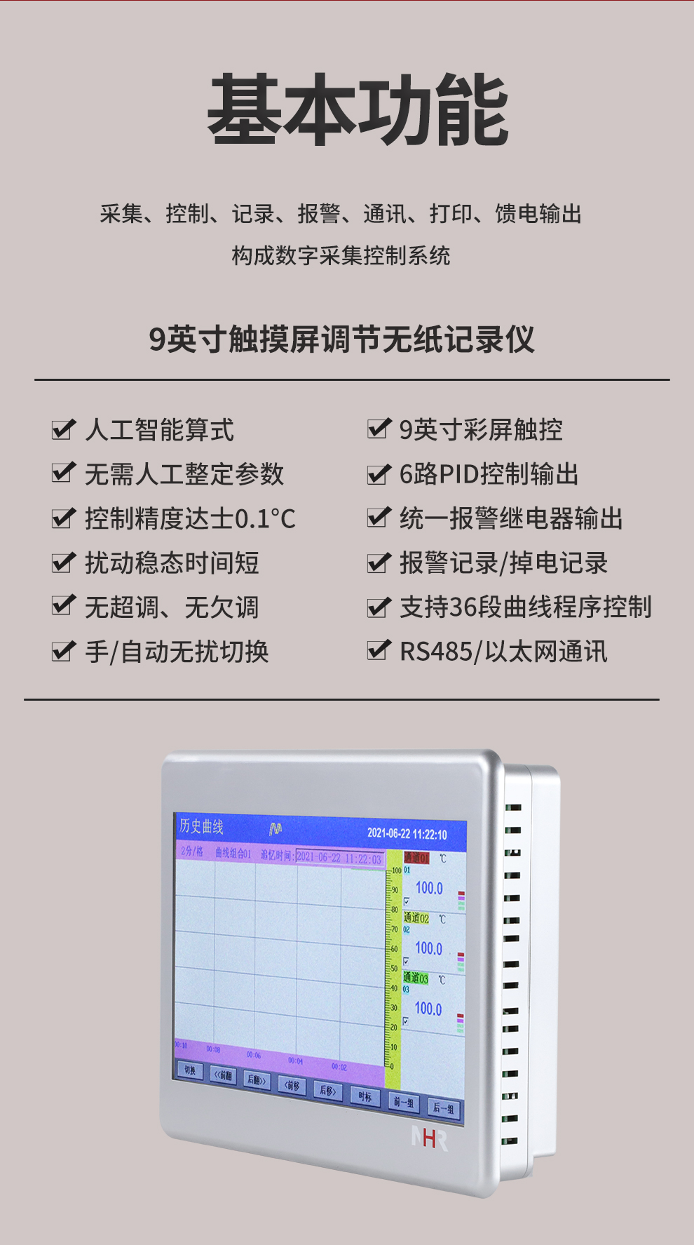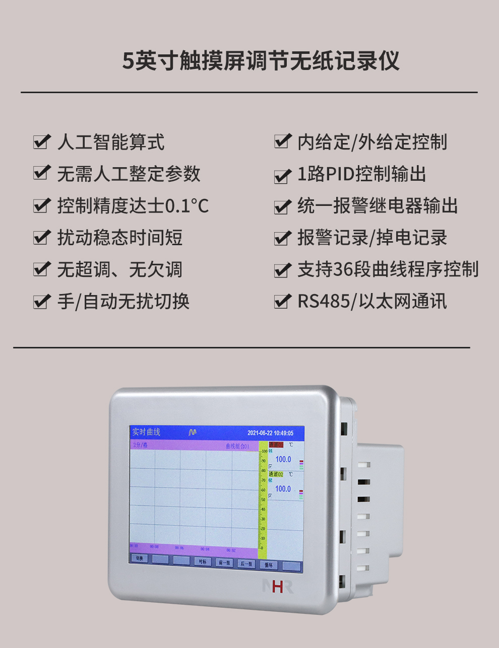 虹潤公司是專業(yè)生產(chǎn)無紙記錄儀的國家專精特新“小巨人”企業(yè)。生產(chǎn)的觸摸屏調節(jié)無紙記錄儀,具有觸摸大屏顯示,真正人工智能算式,無需人工整定參數(shù),控制精度達士0.1°C,數(shù)據(jù)記錄與轉存, RS485/以太網(wǎng)通訊,5/7/9英寸可選等特點。產(chǎn)品獲得智能化控制器、人工智能調節(jié)器及調節(jié)方法、模糊PID控制儀及控制方法、平板無紙記錄儀、巡回檢測顯示方法及裝置等5項國家發(fā)明專利,主持起草物聯(lián)網(wǎng)智能記錄儀表通用技術條件、物聯(lián)網(wǎng)智能溫度儀表通用技術條件、工業(yè)過程測量和控制系統(tǒng)用智能調節(jié)器等3項國家標準,通信系統(tǒng)多通道數(shù)據(jù)采集控制終端規(guī)范軍用標準,以及空間數(shù)據(jù)與信息數(shù)據(jù)傳輸系統(tǒng)等2項航天標準,參與國際5G標準制定,取得觸摸屏彩色調節(jié)無紙記錄儀等3項相關軟件著作權。產(chǎn)品廣泛應用于電力、石化、冶金、化工、食品、制藥、熱處理、水處理、機械配套等諸多領域。