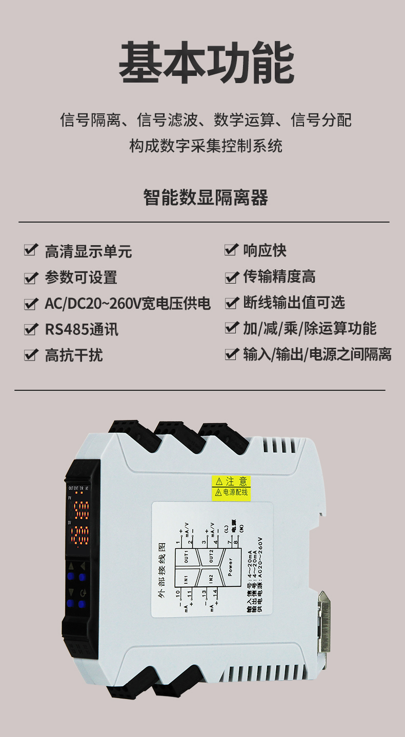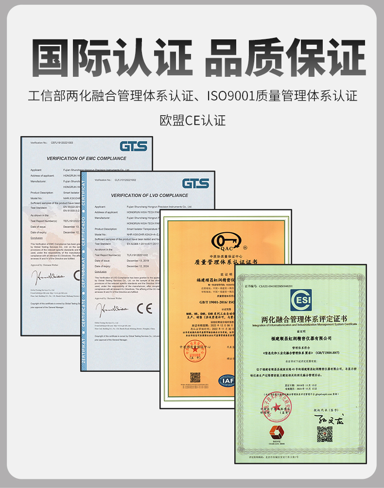 虹潤(rùn)公司是專(zhuān)業(yè)生產(chǎn)隔離器的國(guó)家專(zhuān)精特新“小巨人”企業(yè)。生產(chǎn)的導(dǎo)軌式智能隔離器 ,具有高清顯示單元,參數(shù)可設(shè)置,寬電源供電,響應(yīng)快,帶RS485通訊等特點(diǎn)。產(chǎn)品獲得信號(hào)隔離器、一種二端子模塊、無(wú)源信號(hào)隔離器等3項(xiàng)國(guó)家發(fā)明專(zhuān)利,主持起草現(xiàn)場(chǎng)設(shè)備工具(FDT)接口規(guī)范、工業(yè)過(guò)程測(cè)量和控制系統(tǒng)用隔離式安全柵、工業(yè)過(guò)程測(cè)量和控制系統(tǒng)用配電器等3項(xiàng)國(guó)家標(biāo)準(zhǔn),以及通信系統(tǒng)多通道數(shù)據(jù)采集控制終端規(guī)范軍用標(biāo)準(zhǔn),參與國(guó)際5G標(biāo)準(zhǔn)制定,取得智能隔離器等2項(xiàng)相關(guān)軟件著作權(quán)。產(chǎn)品廣泛應(yīng)用于電力、石化,冶金、制藥、水處理、機(jī)械配套等各種工業(yè)現(xiàn)場(chǎng)。