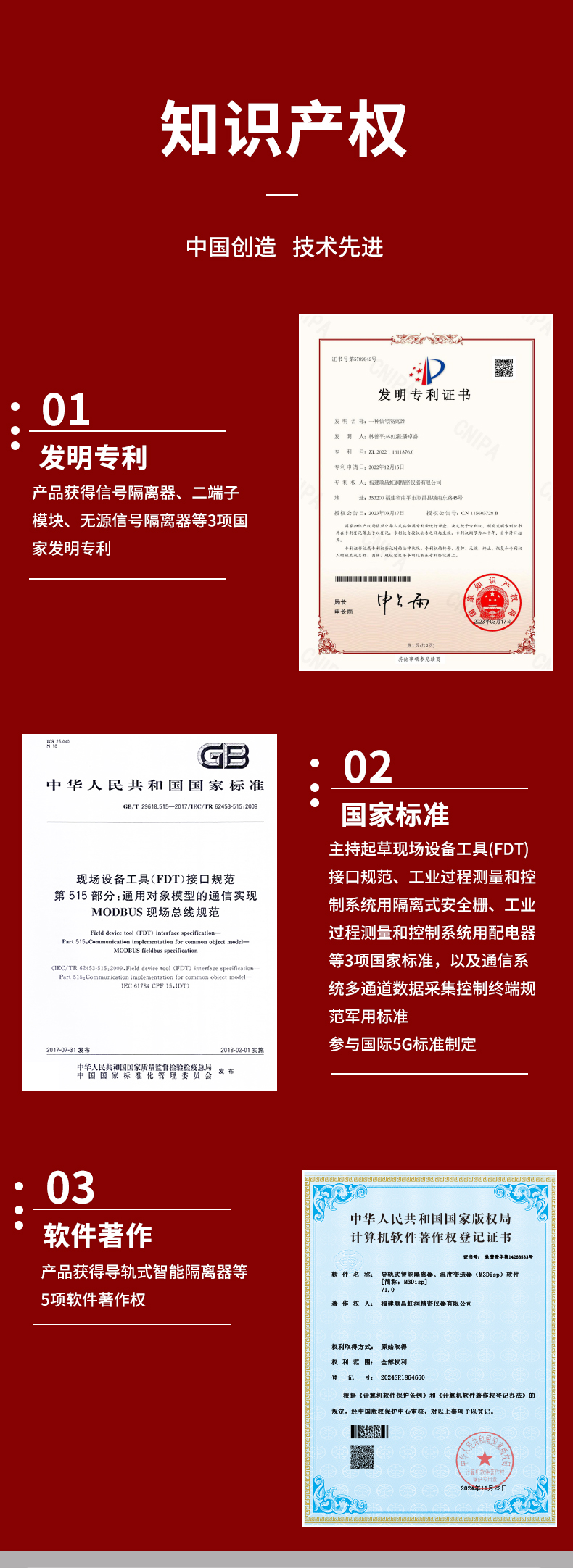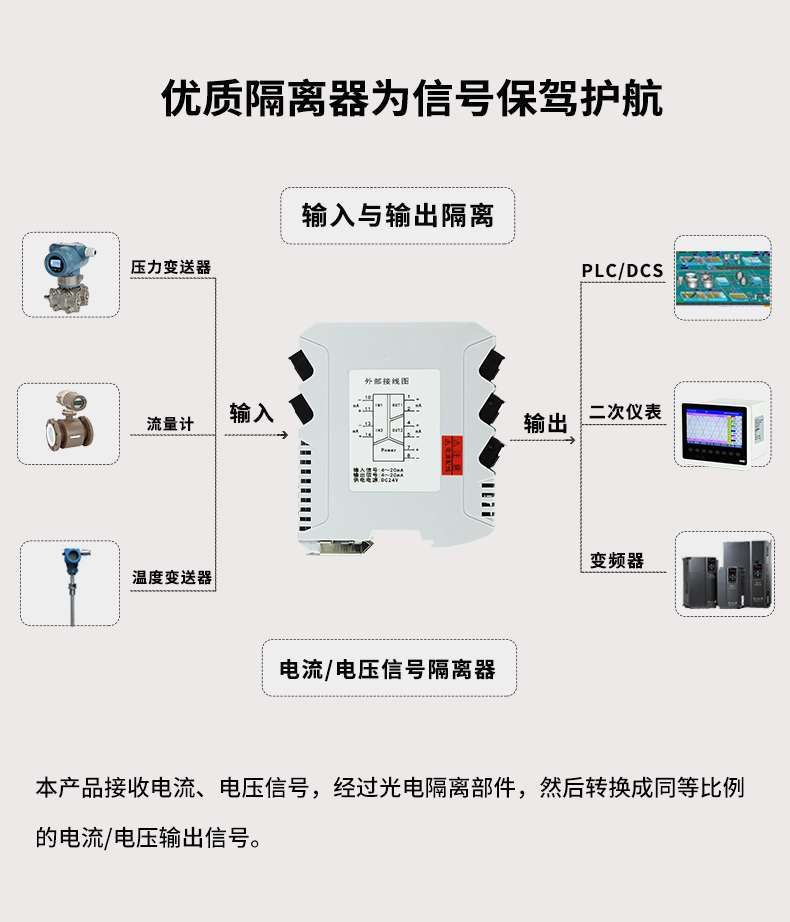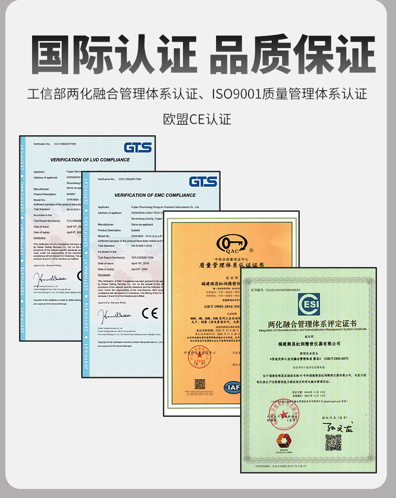 虹潤公司是專業(yè)生產(chǎn)隔離器的國家專精特新“小巨人”企業(yè)。生產(chǎn)的智能信號(hào)隔離器涵蓋電流電壓變送器、溫度變送器、配電器、頻率轉(zhuǎn)換器、開關(guān)量轉(zhuǎn)換器及通訊轉(zhuǎn)換器等多種產(chǎn)品類型。產(chǎn)品獲得信號(hào)隔離器、一種二端子模塊、無源信號(hào)隔離器等3項(xiàng)國家發(fā)明專利,主持起草現(xiàn)場設(shè)備工具(FDT)接口規(guī)范、工業(yè)過程測量和控制系統(tǒng)用隔離式安全柵、工業(yè)過程測量和控制系統(tǒng)用配電器等3項(xiàng)國家標(biāo)準(zhǔn),以及通信系統(tǒng)多通道數(shù)據(jù)采集控制終端規(guī)范軍用標(biāo)準(zhǔn),參與國際5G標(biāo)準(zhǔn)制定,取得導(dǎo)軌式智能隔離器、頻率轉(zhuǎn)換器等3項(xiàng)相關(guān)軟件著作權(quán)。產(chǎn)品廣泛電力、冶金、工業(yè)電爐、變電站、高壓電機(jī)房等需要電隔離的工業(yè)自動(dòng)化控制系統(tǒng)。