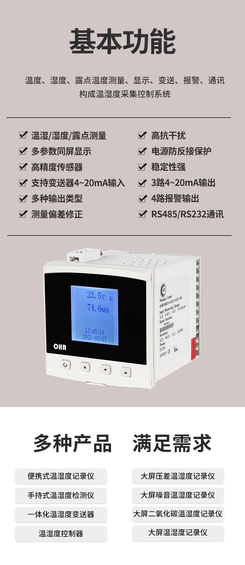 虹潤公司是專業(yè)生產(chǎn)環(huán)境監(jiān)測儀表的國家專精特新“小巨人”企業(yè)。生產(chǎn)的壁掛式溫濕度控制器,具有溫度、濕度、露點高精準的測量,多種輸出類型,穩(wěn)定性強,RS485/RS232通訊,IP65防護等級等特點。產(chǎn)品獲得一種手持式低功耗溫濕度檢測儀、大屏幕溫濕度記錄儀等2項國家發(fā)明專利,主持起草物聯(lián)網(wǎng)智能溫度儀表通用技術(shù)條件、冷鏈溫度記錄儀等2項國家標準,通信系統(tǒng)多通道數(shù)據(jù)采集控制終端規(guī)范軍用標準,以及現(xiàn)場設(shè)備集成等5項智能制造國家標準,參與國際5G標準制定,取得溫濕度儀表等2項相關(guān)軟件著作權(quán)。產(chǎn)品廣泛應(yīng)用于工業(yè)現(xiàn)場、農(nóng)業(yè)大棚、倉儲物流、地下管廊、養(yǎng)殖孵化、配電機房等諸多領(lǐng)域。