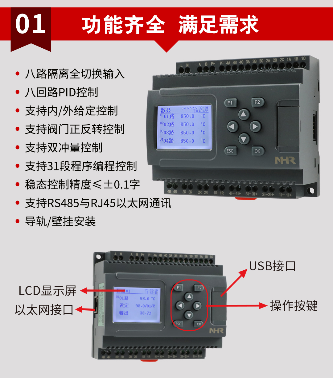 虹潤(rùn)公司是專(zhuān)業(yè)生產(chǎn)溫控器的國(guó)家專(zhuān)精特新“小巨人”企業(yè)。生產(chǎn)的溫度控制器,具有4路或8路PID控制,真正人工智能算式,無(wú)需人工整定參數(shù),控制精度達(dá)士0.1°C,數(shù)據(jù)記錄與轉(zhuǎn)存等特點(diǎn)。產(chǎn)品獲得智能化控制器、人工智能調(diào)節(jié)器及調(diào)節(jié)方法、模糊PID控制儀及控制方法、一種平板無(wú)紙記錄儀、巡回檢測(cè)顯示方法及裝置等5項(xiàng)國(guó)家發(fā)明專(zhuān)利,主持起草物聯(lián)網(wǎng)智能記錄儀表、物聯(lián)網(wǎng)智能溫度儀表、工業(yè)過(guò)程測(cè)量和控制系統(tǒng)用智能調(diào)節(jié)器等3項(xiàng)國(guó)家標(biāo)準(zhǔn),參與國(guó)際5G標(biāo)準(zhǔn)制定,取得液晶溫控器儀表等3項(xiàng)相關(guān)軟件著作權(quán)。產(chǎn)品廣泛應(yīng)用于電石化、工業(yè)爐、試驗(yàn)設(shè)備、注塑機(jī)械、包裝機(jī)械等需要對(duì)現(xiàn)場(chǎng)溫度進(jìn)行監(jiān)測(cè)控制的行業(yè)。