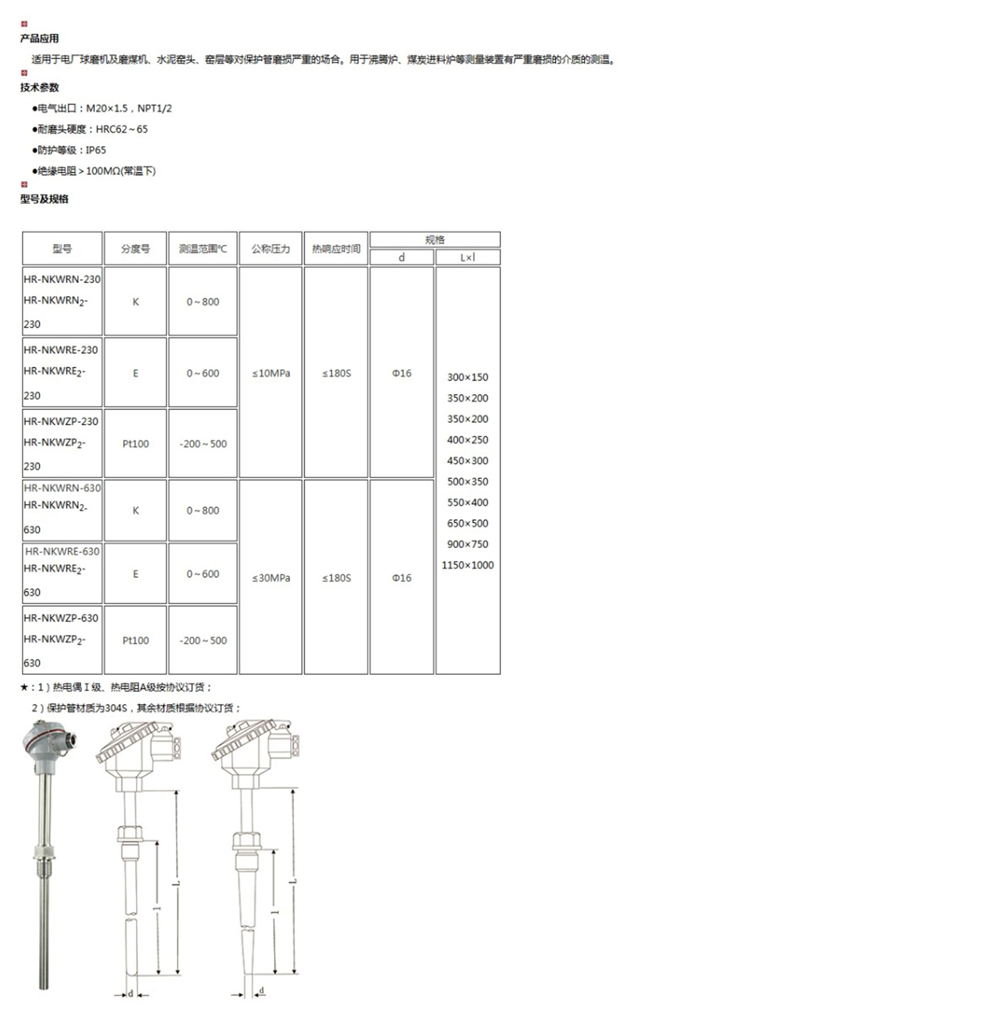 耐磨熱電偶(阻)采用等離子噴漆技術、高鉻鑄鐵和高溫合金不同材料制成的耐磨保護管,專門為高、中、低溫耐磨環(huán)境的測量場合設計制造的,可適用于循環(huán)流化床、沸騰爐、水泥回轉窯尾煙室