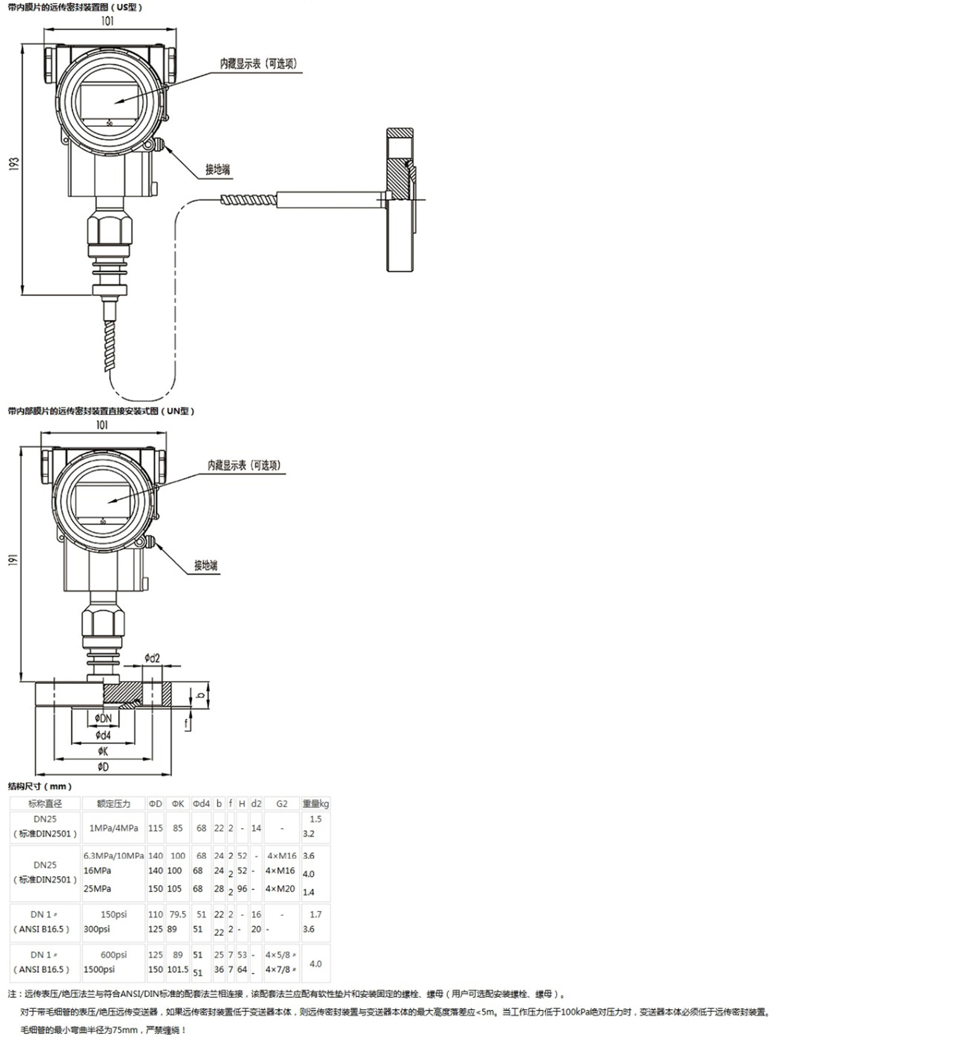 該產(chǎn)品用于測量液體、氣體或蒸汽的液位、密度、壓力,將其轉(zhuǎn)變成4~20mA (HART)電流輸出信號,可通過RST375手持終端對它們進行參數(shù)設(shè)定、過程監(jiān)控等。測量范圍(未遷移時)為0-6kPa~25MPa,液位法蘭的額定壓力分別為:1.6/4MPa、6.4MPa、10MPa、150psi、300psi或600psi。