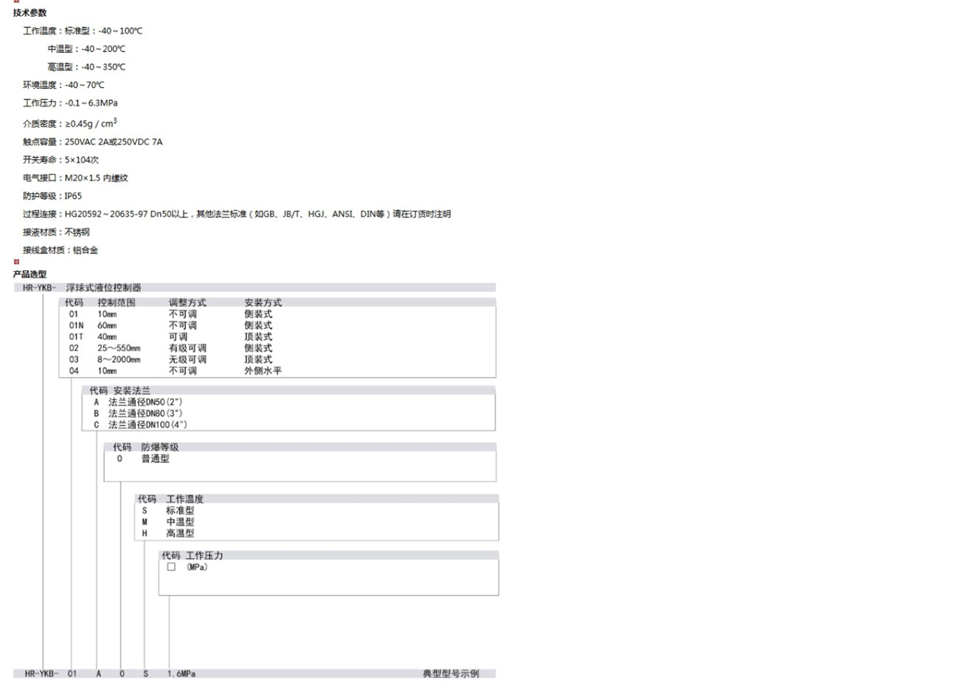 HR-YKB系列浮球式液位控制器,廣泛適用于石油、化工、電力、冶金、食品、制藥、造紙等行業(yè),能實現(xiàn)對各類容器內液位的自動報警或控制。
